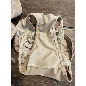Adorable one of a kind Kate Quinn ruffled two piece doggy bikini. Bulldog printed, bohemian style cropped style