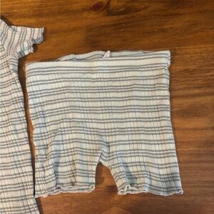 Super comfy and cute. My daughter wore these as PJs, or just as a cute set. Great for summer. Cotton. Ribbed. Light green. Size 4T.