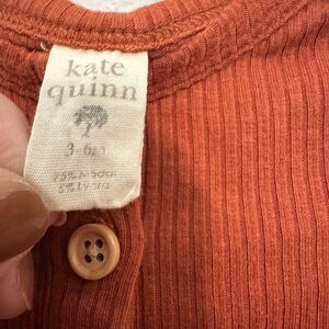 Kate Quinn Long Sleeve Bodysuit Modal Henley Rib Knit 3-6M Orange Rust Pumpkin