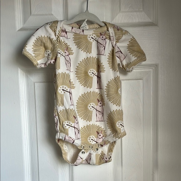 Charming bodysuit with starburst and arrow design. Made from soft organic cotton. Raw edge cotton