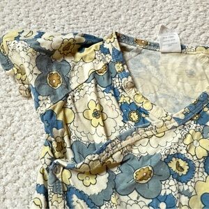 Kate Quinn Midcentury Floral Blue Yellow Kimono Bodysuit Size 12-18 Months