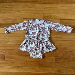 Kate Quinn Organic Seafoam Bamboo & Brown Floral Nature Skirted Bodysuits 18-24