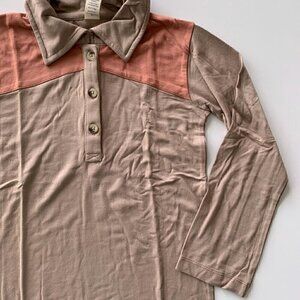 Kate Quinn Organics Boy Bamboo Long Sleeve Two Tone Polo Shirt 7 Years