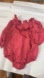 Adorable red baby romper with ruffled neckline. Perfect for any occasion.