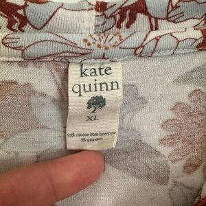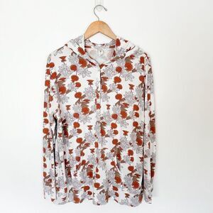 Kate Quinn Women’s Blue Rust Retro Floral Bamboo Blended 1/4 Button Hooded Top