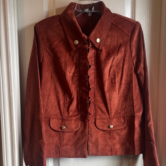 Elevate your style with this chic rust blazer. Perfect for any occasion, it adds a touch of elegance to your wardrobe. Corduroy. Pit to pit 20in