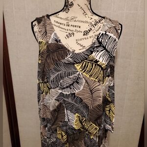 Multi-colored, floral, sleeveless, layered, midi dress. Women's size 1X. Excellent used condition.