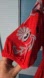 Elegant red dress with floral embroidery, perfect for any occasion. Features a flattering tie waist and intricate detailing. Puff style sleeves. Ties at waist. Pockets T20