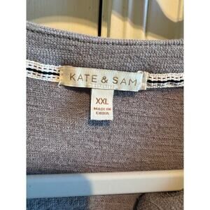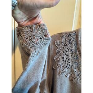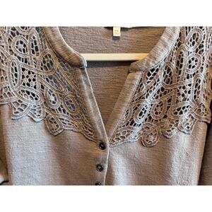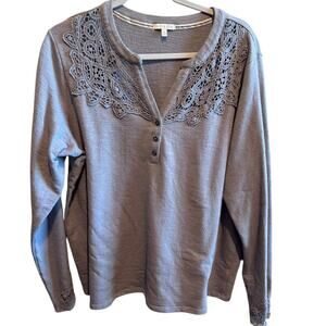 Kate & Sam Gray Long Sleeve 3 Button V-Neck Lace Top Shirt Sz XXL