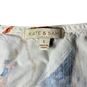 Super soft 100% Rayon lighthouse and sailboat dress. Brand Kate and Sam. super cute nautical print with Rope accents on the shoulder. Fully lined to not be see through. Nice size pockets. Size Large, please see measurements below