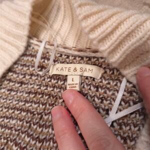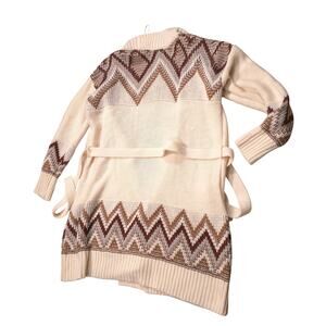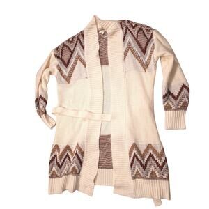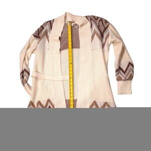 Kate & Sam Off White Belted Open Front Long Cardigan Thick Women Size L Warm