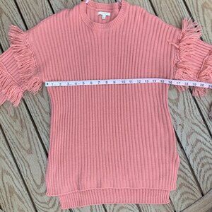 Kate & Sam Rib Stitch Knit Fringed Long Sleeve Crew Neck Sweater SzS