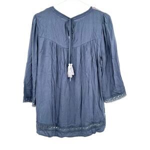 Kate & Sam Size Small Lace Embroidered Long Sleeve Shirt Top Blouse Blue