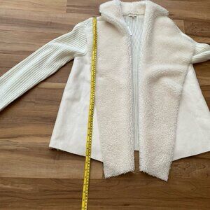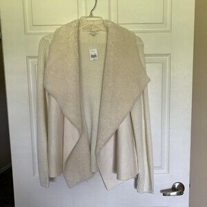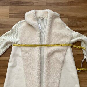 Kate & Sam Waterfall Knit Cardigan Sweater Womens L Ivory Faux Fur Open Front