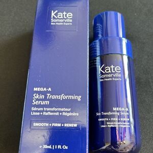 Experience the rejuvenating power of Kate Somerville's Mega-A Skin Transforming Serum. This blue serum is designed to smooth, firm, and renew your skin, providing a radiant and youthful appearance.