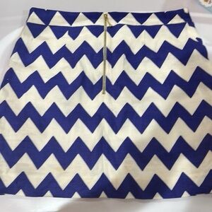Kate Spade 100% Linen Robbie Skirt Chevron Blue White Mini Skirt