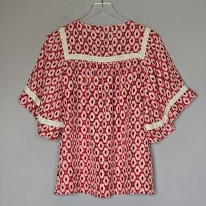 Kate Spade 100% Silk Posy Ikat Bohemian Red Patterned Women's Top