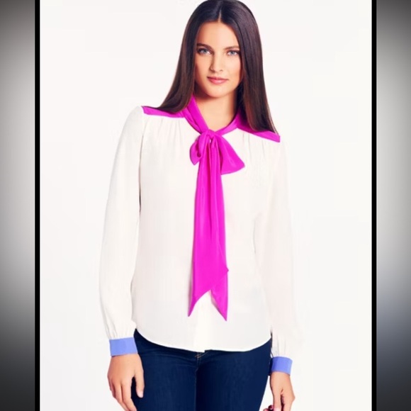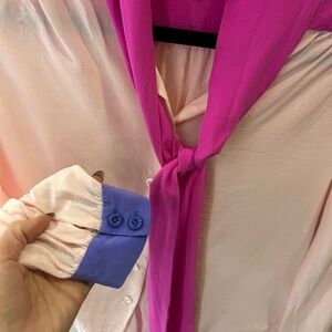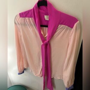 Kate Spade 100% silk cream pink and purple button down blouse size 6