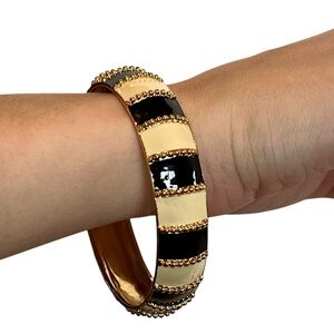 Kate Spade 12 Karat NY Harbor Lights Stripe Gold Black White Bangle Bracelet