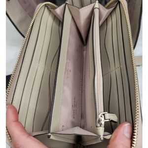 interior: 12 credit card slots, 2 slip pockets, zip coin compartment, 3 gusset compartments