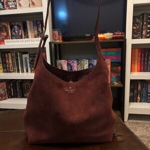 ♠️Kate Spade 454 Suede Large Shoulder Bag, Dark Merlot Burgundy Wine Red NEW NWT