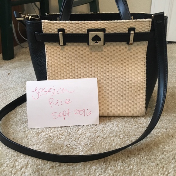 Straw and black leather!! In EUC, small pin mark on interior (right side of pic)