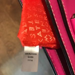 Fuchsia Kate Spade Tote. Lots of space, zipper and two pockets. See photo small stain but not visible when worn. No Trades!