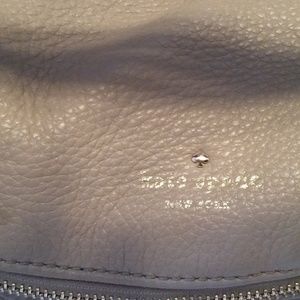 Kate Spade handbag, beige, two handles with detectable shoulder strap, black and white interior fabric, no stains or rips.