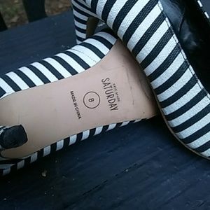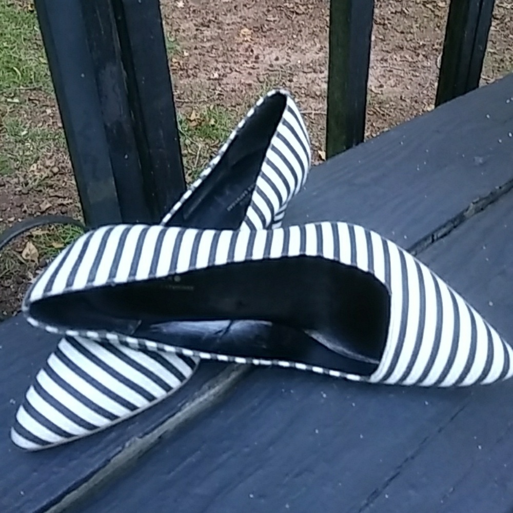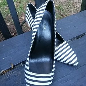 Black and White striped heels. In fair condition. No scratches or wear, gently worn. Size 8.