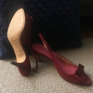 Kate Spade Red Suede Open Toe Slingback Heels