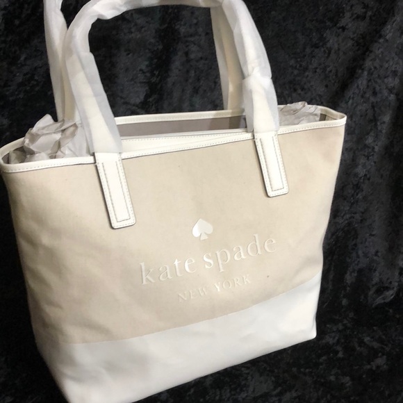 Kate Spade purse white and beige canvas and patent leather. Gorgeous