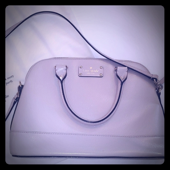 Cream grayish Kate spade bag... GUC.. has some minor imperfections here and there.. as seen in picture.. some wear on underside of handles. Has a cross body strap. Open to offers. Dust bag not included.
