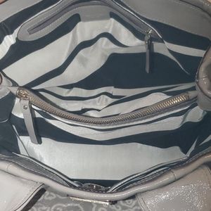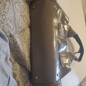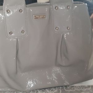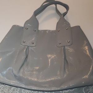 Gray kate spade patent leather spacious hand bag. In great condition.. barely any flaws to mention.. handles have some very small minor cracking, but barely noticeable unless inspecting closely. Open to offers.