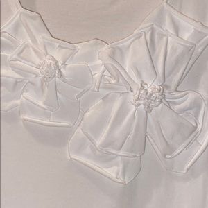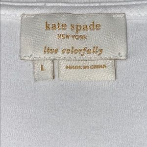 Kate Spade New York white tee with a front two flower motif. Hand wash. Large. 95% cotton 5% spandex for that extra stretch. Really good condition. Worn maybe one time.