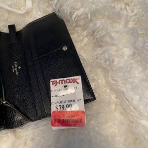 Kate Spade wallet tang with black bow. Excellent condition. Inside with back and white polka dots