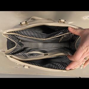 Large cream and black Kate Spade bag. Used, still in good shape. Small discoloration on back as shown
