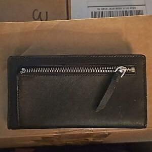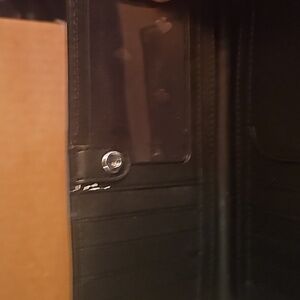 Slim wallet perfect for any of your favorite handbags. black with gold zipper. Excellent storage for the cards and such!