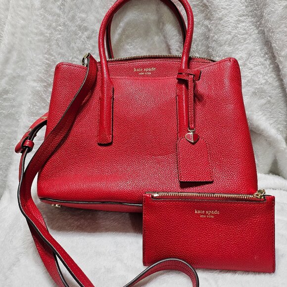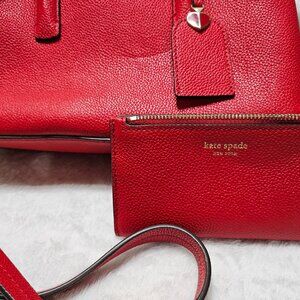 Kate Spade, This bag is like new, has 3 compartments, the inside has a zipper closure. Has a detachable strap that makes it into a crossbody. Comes with a matching wallet. Wallet has 6 credit card pockets, 1 clear. 2 pockets - one on each side, also has a zipper pocket