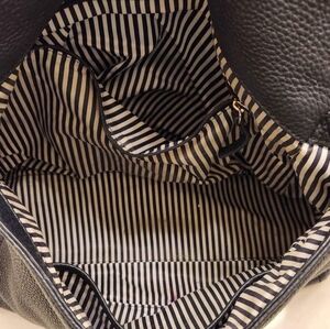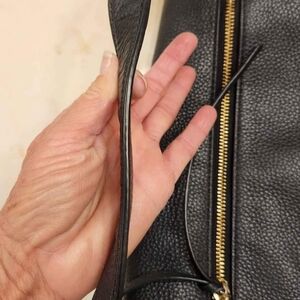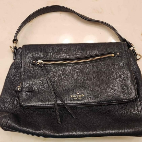 Beautiful soft pebble leather Kate Spade bag. It is a VERY dark navy, but it absolutely looks black. No rips, tears, or holes in the leather. There are some pen marks in the inside lining. Lots of zipper pouches, one strap hobo style. Overall, it's a great bag. I just have too many. $40.