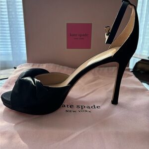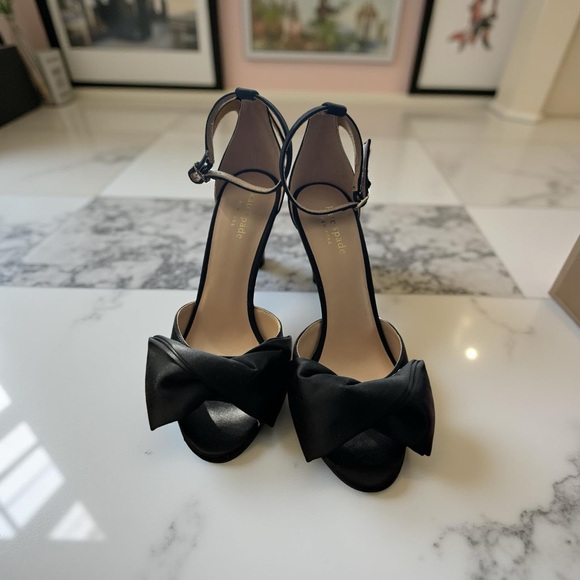 Kate Spade Black 4 inch Heels. Wedding Bow. Beautiful. Worn once. In excellent condition. Pink shoe bag included.