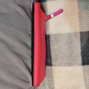 -Red, pink, white & black stripe saffiano leather