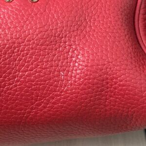 Authentic Kate Spade Boston Red Pebbled Calfskin Barrel Bag. Measures 14”l x 5”d x 5.5”h
