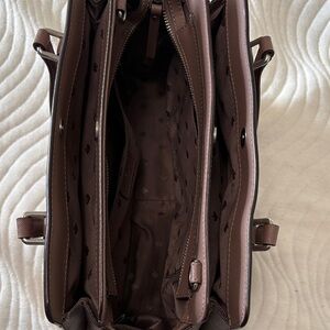 Elegant Kate Spade bag. Like new interior with spade pattern. Small scuff mark on the back, hardly even noticeable (see photo) 8”x12”x5”