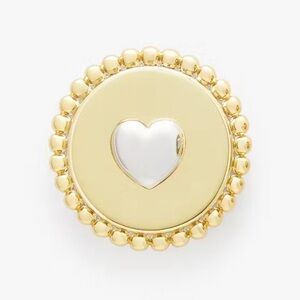Chic stud earrings with silver centers and gold accents. Features a heart design. Ideal for adding elegance.