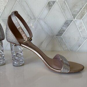 Kate Spade 9B PVC Cylinder Block Heel Sandal Strap Crystals Alora Pave Round Toe