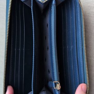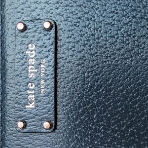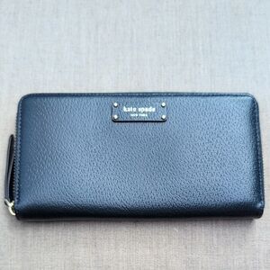 Large Kate Spade accordion zip leather wallet in navy blue.