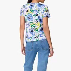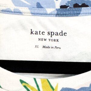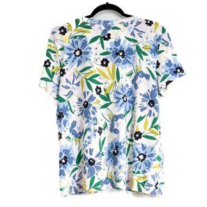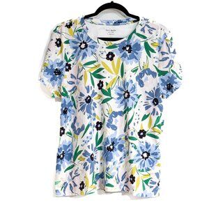 Kate Spade All Over Floral Print Tee 100% Cotton Blue Multicolor Women's Size XL