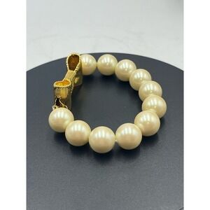 Simulated cream pearls and gold tone bow clasp