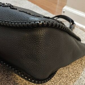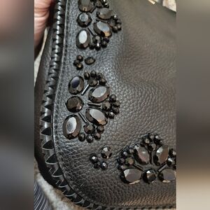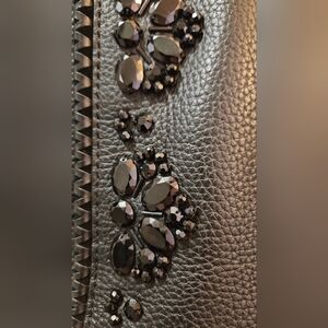 Supple black pebble leather with black faceted stones.