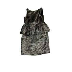 Kate Spade Andi Metallic Peplum Dress 4 Glitters Gunmetal Silver